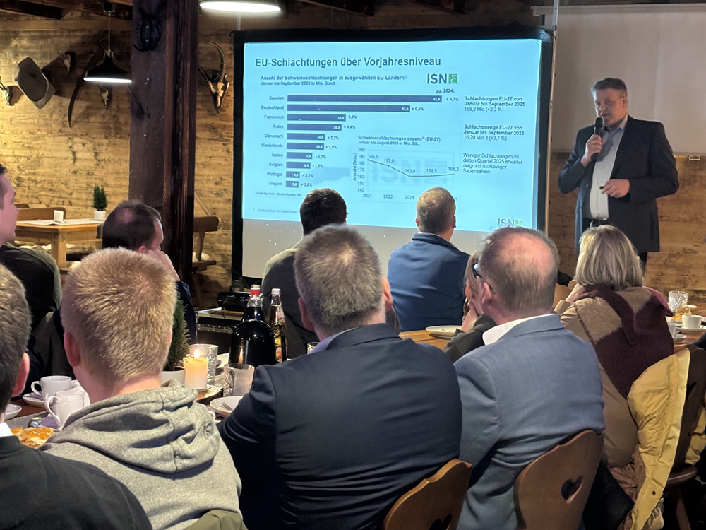 ISN-Geschäftsführer Dr. Torsten Staack erläuterte anhand von Zahlen und Fakten die Zusammenhänge am europäischen und deutschen Schweinemarkt ©ISN