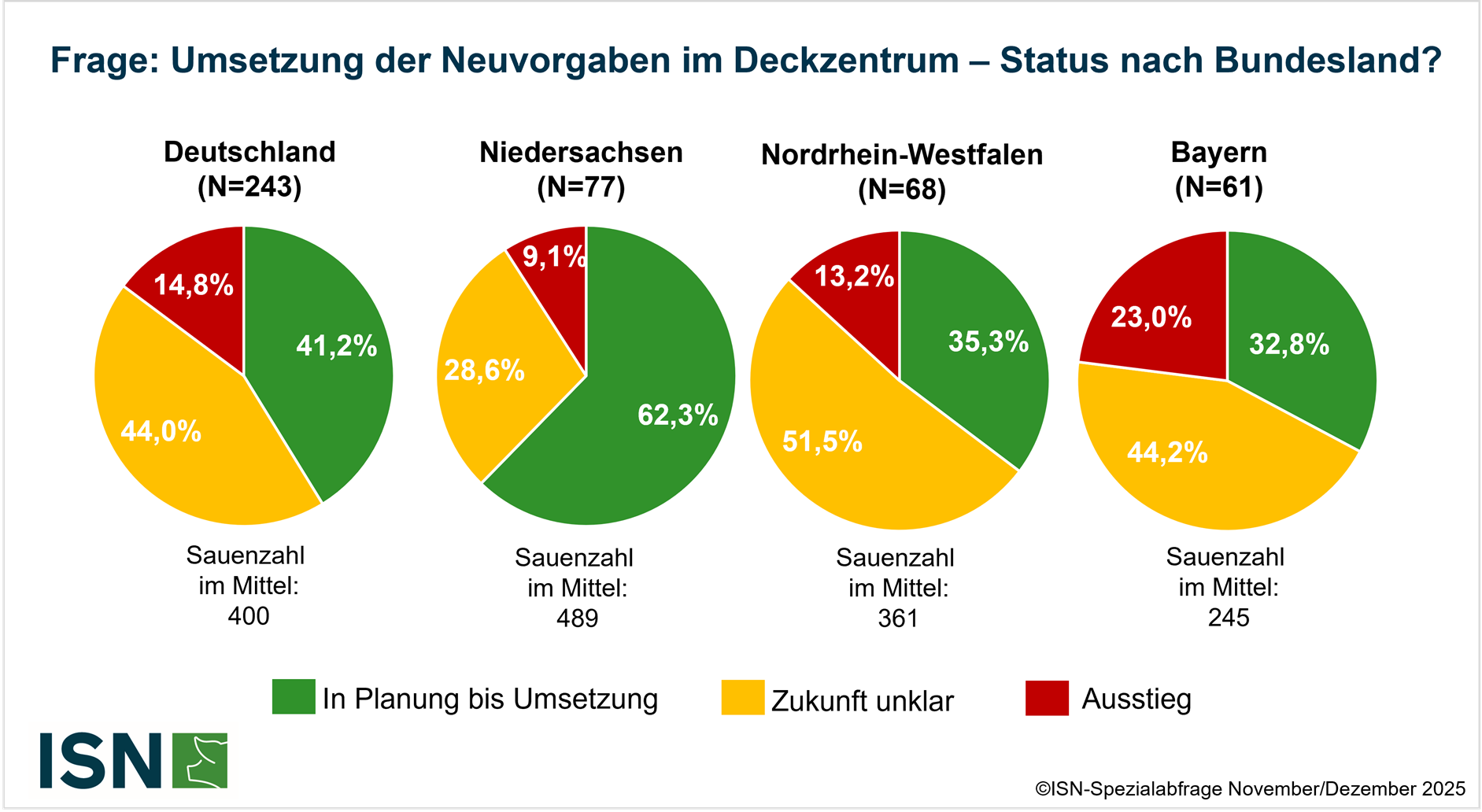 Stand beim Umbau des Deckzentrums nach Bundesland - ISN-Spezialabfrage zur Sauenhaltung Nov/Dez 2025 ©ISN